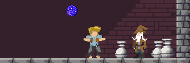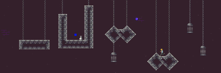 glitzerndem blauviolettem Ball über Hindernisse geworfen werden, um nach oben zu gelangen. Der Trick hierbei ist, dass der Ball den Spieler an die Stelle teleportiert, an der er stehen bleibt, sodass vorsichtiges und strategisches Werfen hier der Schlüssel ist.
