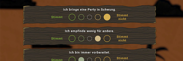 Dieses Spiel wurde als Gamifizierung von Persönlichkeitstests entwickelt, mit dem Ziel, den Prozess dieser Tests unterhaltsam und kontextreich, aber dennoch genau zu gestalten. Die Punkteverteilung und Ergebnisse basieren auf den Big Five