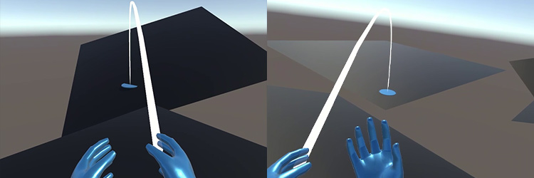 In diesem Screenshot sind erste Versuche mit virtueller Realität zu sehen, bei denen eine einfache Teleportationsfähigkeit verwendet wird. Meine persönliche Idee für die Zukunft ist es, einen Gehsimulator mit VR zu erstellen, um den Spieler einen Einblick in